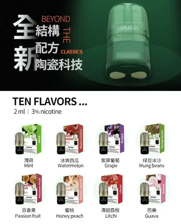 高品質陶瓷材料製造,VAKA五代煙彈提供多種口味選擇,滿足您的多樣需求。選擇VAKA五代煙彈,享受純淨煙霧與絕佳口感。